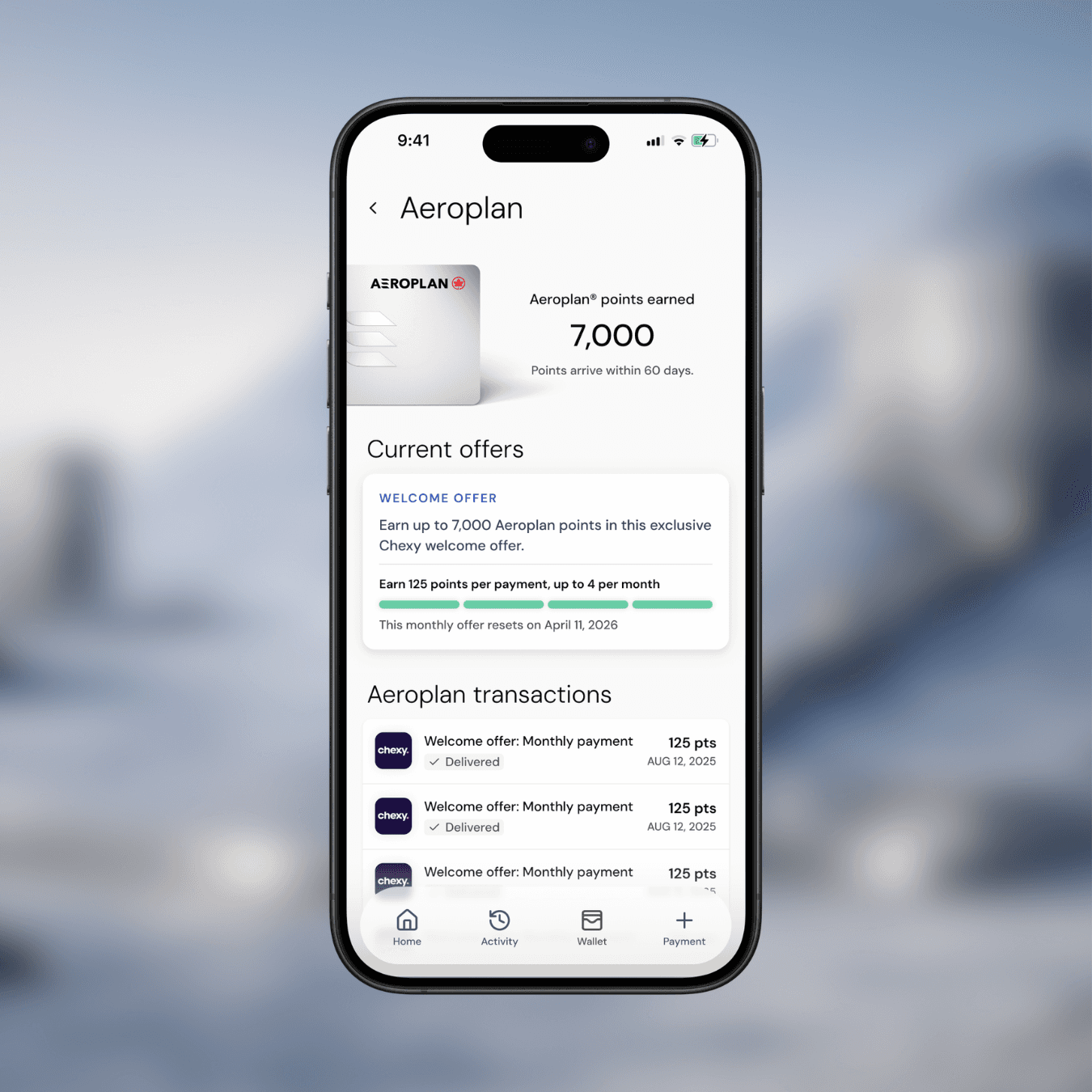 To qualify for Aeroplan Points under this offer, payments must remain valid, completed, and not reversed.