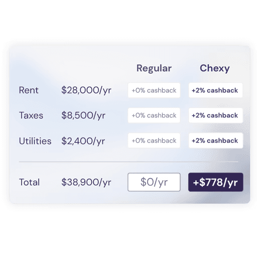 “Chexy has been a game-changer for my rent payments! I love the convenience of using my credit card, earning cashback every month, and never having to worry about missed payments. ”