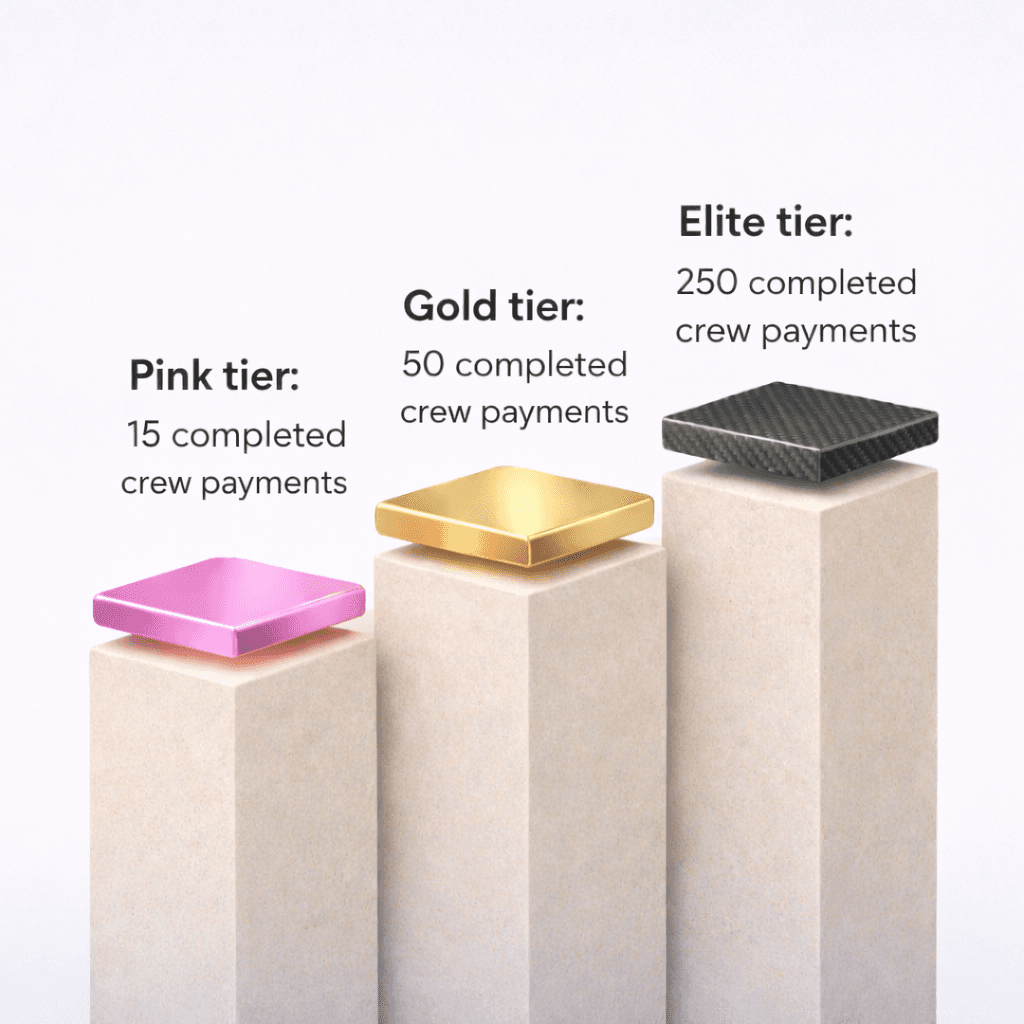 When your total crew payment count reaches your tier’s threshold, your reduced fees are extended through the end of 2027.