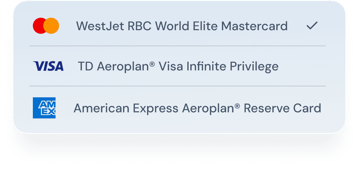 Choose the card that earns you the most points. Use your Visa, Mastercard or Amex to complete your payment.