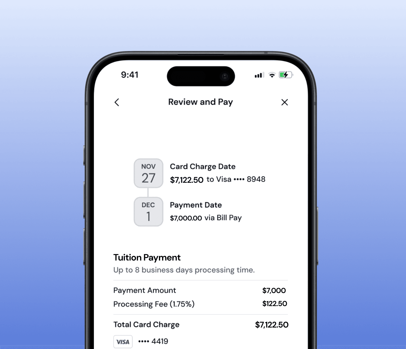 Chexy submits your payment 3 business days later via bill pay
